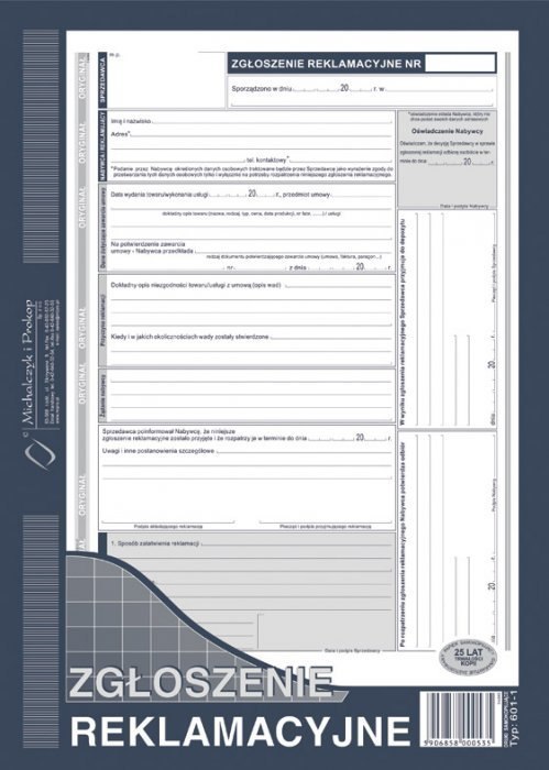 601-1 Zgłoszenie reklamacji MICHALCZYK&PROKOP A4 40 kartek