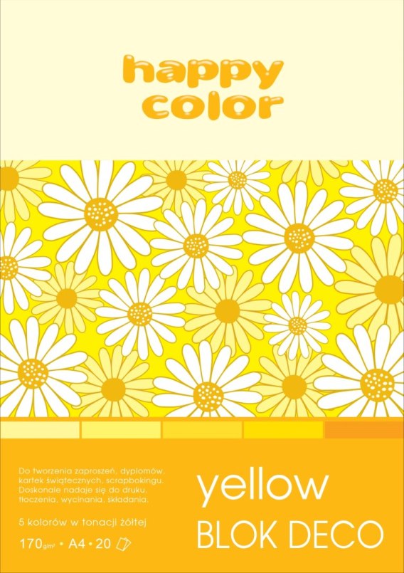 Blok Deco Yellow A4, 170g, 20 ark, 5 kol. tonacja żółta, Happy Color HA 3717 2030-012