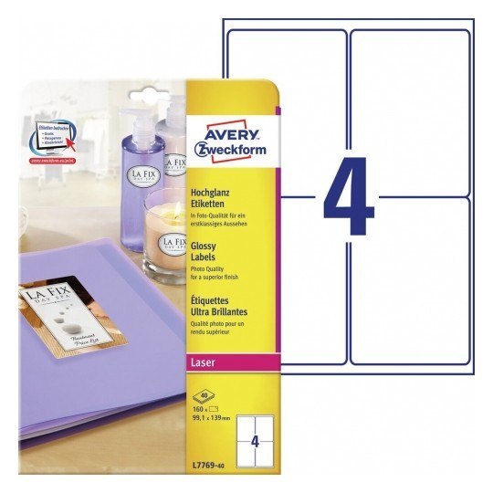 Błyszczące etykiety na produkty 99,1 x 139 mm 40 ark. Avery Zweckform L7769-40
