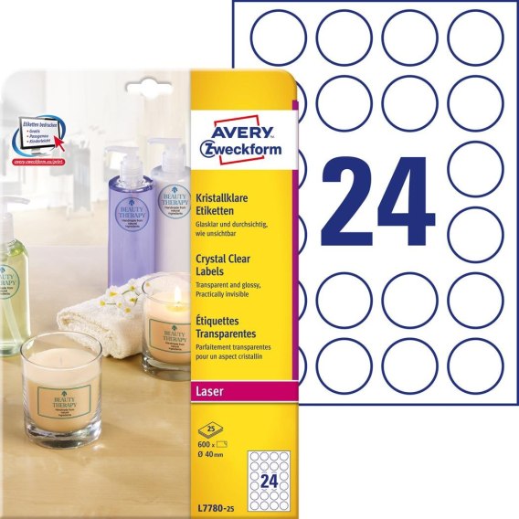 Technologia druku:•LASER: Tak•LASER COLOR: TakCechy produktu:•Rozmiar etykiety (mm): _40•Etykiet / arkusz: 24•Arkuszy/ opakowanie: 25•Etykiet/ opakowanie: 600•Kolor: przezroczyste•Format: A4•Rzędów/ arkusz: 4x6