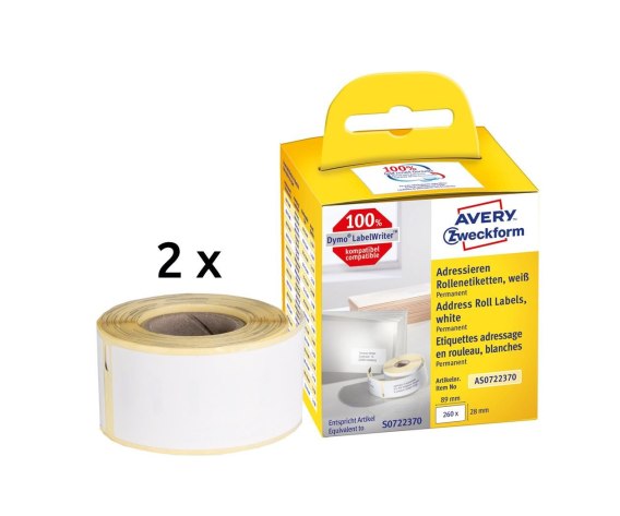 Etykiety adresowe AS0722370 28x89 260 et. x 2 w rolce do termodruku, trwałe, białe, Avery Zweckform