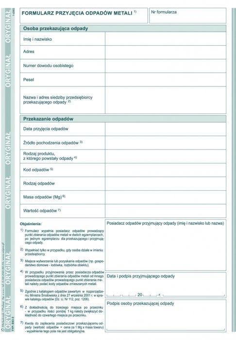 Formularz przyjęcia odpadów metali E03-3 A5 80 stron, MICHALCZYK&PROKOP