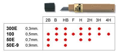 Grafity ołówkowe 0,3mm 300E-B PENTEL
