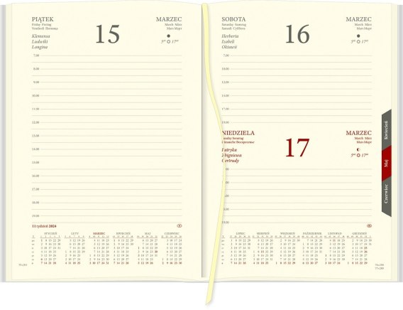 Kalendarz dostępny z kalendarium dziennym drukowanym na papierze: