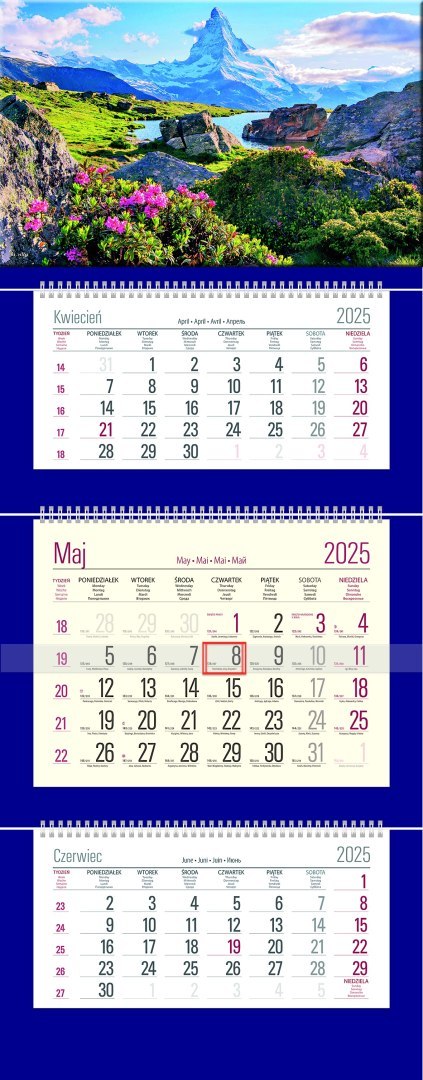 Kalendarz Trójdzielny z główką (T03) PEJZAŻ - granat 2025 TELEGRAPH