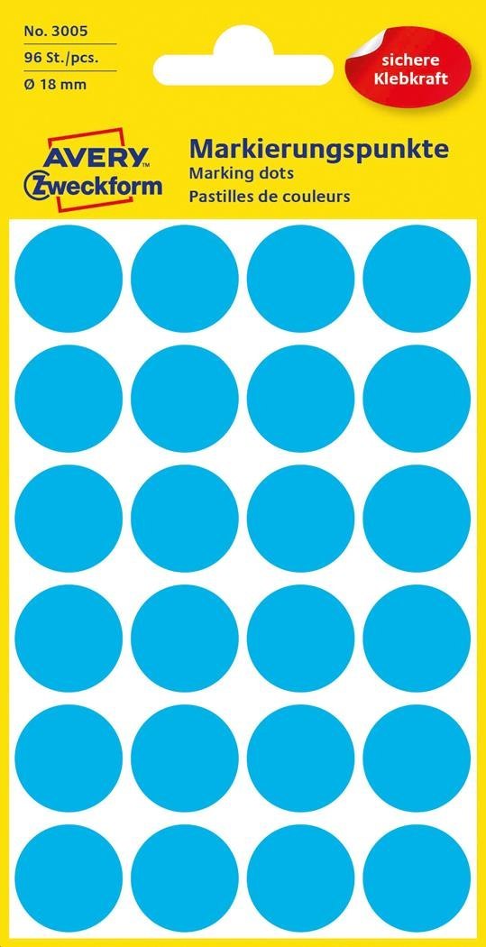 Trwałe kółka do zaznaczania _18mm, 96szt./op. niebieskie 3005 Avery Zweckform
