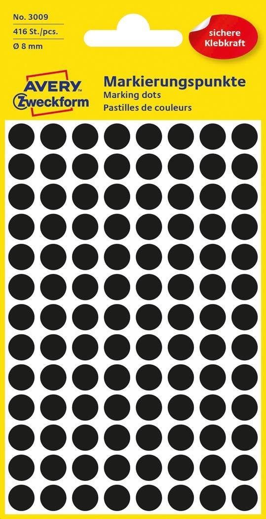Kółka do zaznaczania 3009 Q8 mm 4 ark. czarne Trwałe, Avery Zweckform