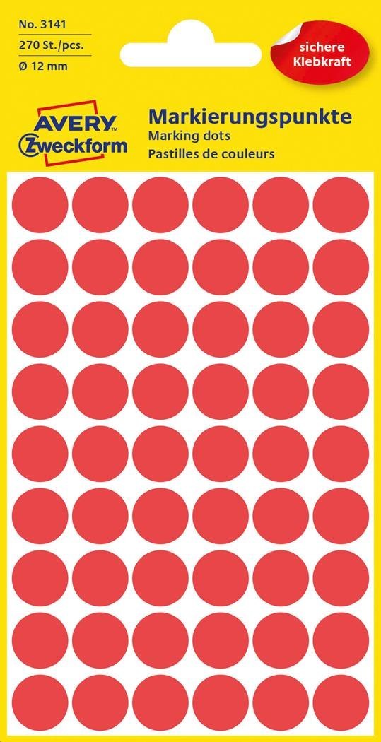 Kółka do zaznaczania 3141 Q12 5ark. czerwone trwałe, Avery Zweckform
