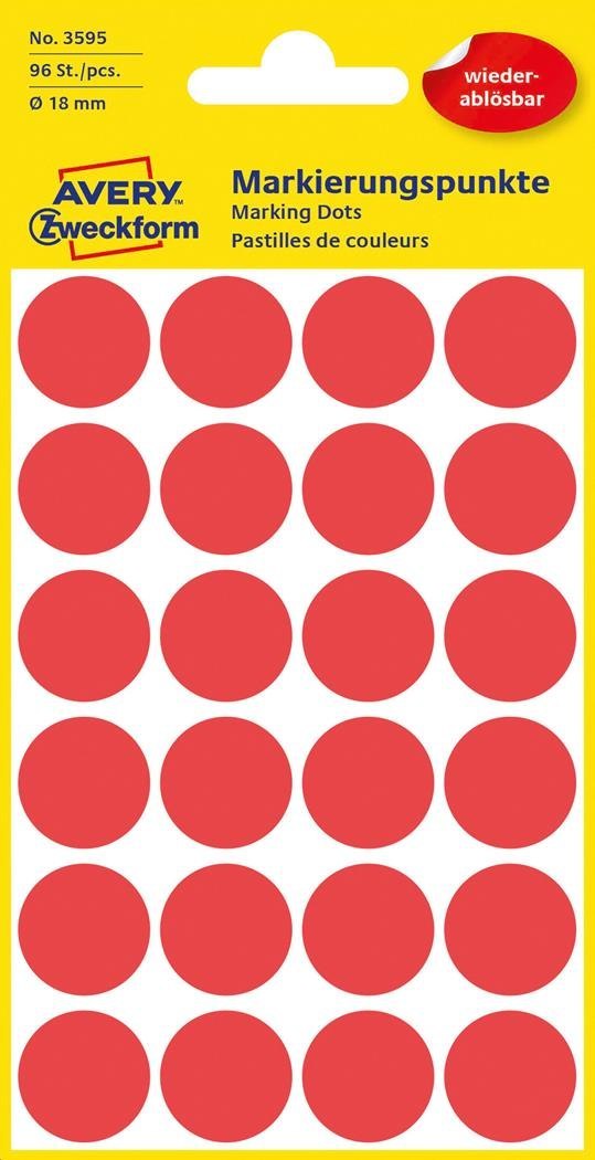 Usuwalne kółka do zaznaczania _18mm, 96szt./op. czerwone 3595 Avery Zweckform