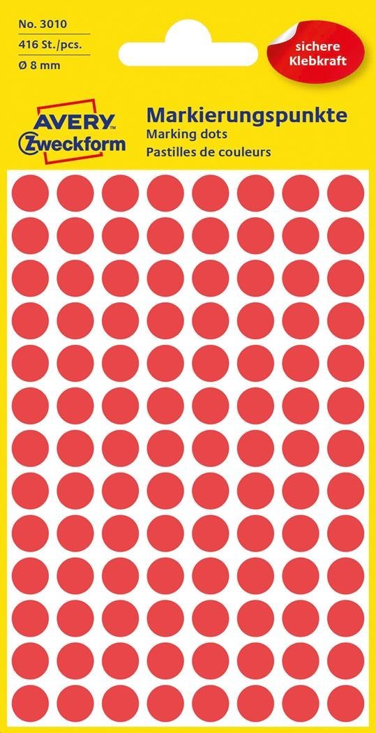 Kółka do zaznaczania kolorowe, 416 etyk./op., Q8 mm, czerwone Avery Zweckform, 3010