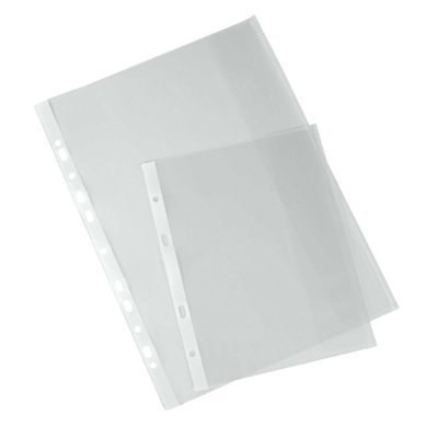 Wykonana z folii groszkowej, z boczną klapką chroniącą przed wypadaniem, format A5, A4 i poszerzony B4, posiada boczną porforację umożliwiającą wpięcie do segregatora, jednostka sprzedaży 1 opakowanie (25 sztuk).
