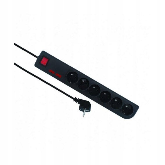 Listwa zasilająca przedłużacz 6 gniazd, 5m, czarny, wyłącznik, 2xbezpiecznik, uziemienie PSF2-605-2