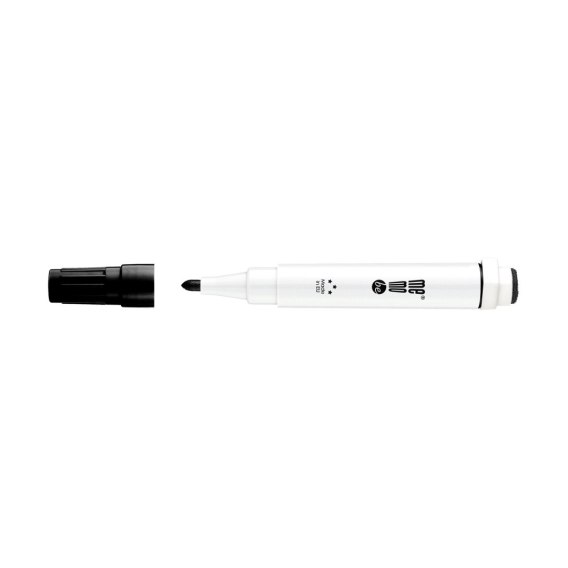 Marker do tablic suchościeralnych i flipchartów MemoBe z wbudowaną gąbką i magnesem, tuszem w kolorze czarnym i okrągłą końcówką w rozmiarze 1-3 mm. Przeznaczony do pisania i rysowania po powierzchni tablicy suchościeralnej i po blokach do flipchartów. Wielofunkcyjny _ gąbka umożliwia szybkie korekty podczas pisania po tablicy, a magnes umożliwia przypięcie markera do powierzchni metalowej. Może być pozostawiony bez skuwki do 3 dni (ISO 554). Łatwościeralny z tablic tusz nie przebija na drugą stronę bloków do flipchartów. Obudowa markera wykonana w 30% z tworzyw z recyklingu. Wyposażony w wentylowaną skuwką zgodną z normą ISO 11540:1993. Dostępny w 4 kolorach: czarnym, zielonym, czerwonym i niebieskim. Wyprodukowany w Europie. Dostarczany w opakowaniu 10 szt.