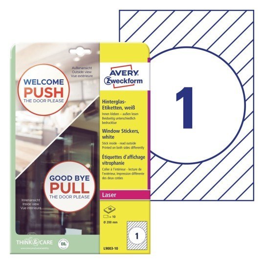 Naklejki na okna, 200 mm, okrągłe, 10 ark., Avery Zweckform L9003-10