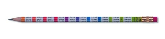 Ołówek grafitowy zakończony gumką. Okrągły w przekroju, twardość HB. Lakierowany, z nadrukiem w formie tabliczki mnożenia. _Długość: 189mm