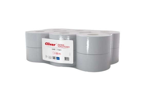 Papier toaletowy jumbo Cliver 130/1 makulatura szary (opak 12 szt.) 6231
