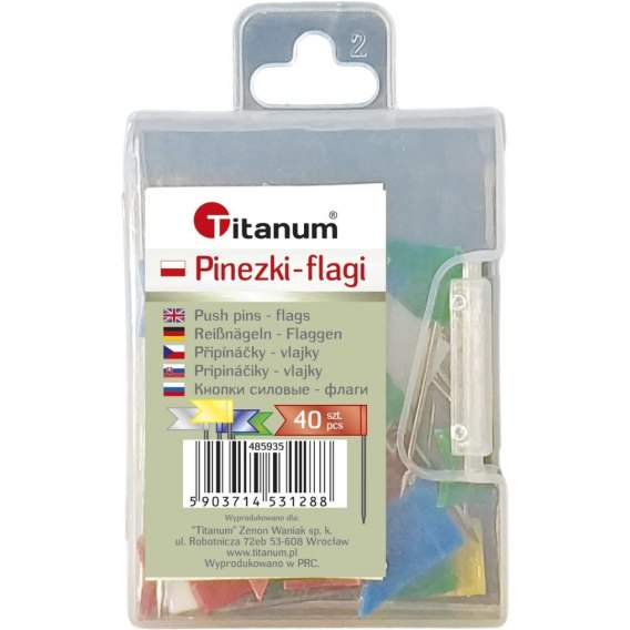 Pinezki Titanum plastikowe flagi kolor: mix 40 sztuk 485935