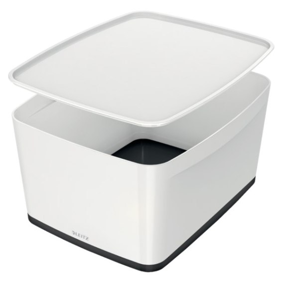 Stylowy, dwukolorowy pojemnik ułatwiający szybkie, bezproblemowe porządkowanie i przechowywanie rzeczy_W połączeniu z pojemnikiem wąskim lub organizerem dużym bądź małym stanowi idealne rozwiązanie do przechowywania zawartości w uporządkowany sposób_Wykonany z trwałego, odpornego na zadrapania, wodoodpornego, a do tego atrakcyjnie prezentującego się tworzywa ABS. Można w nim bezpiecznie przechowywać żywność. Nie zawiera bisfenolu._Oszczędność miejsca: na standardowej półce zmieści się pojemnik duży MyBox z ustawionymi na nim 2 pojemnikami małymi MyBox_Delikatny zatrzask przytrzymuje pokrywę, nie przeszkadzając jednocześnie w jej łatwym zdejmowaniu_Nieużywane pojemniki można przechowywać jedne w drugich, oszczędzając w ten sposób miejsce_Łatwe do czyszczenia, z zaokrąglonymi krawędziami