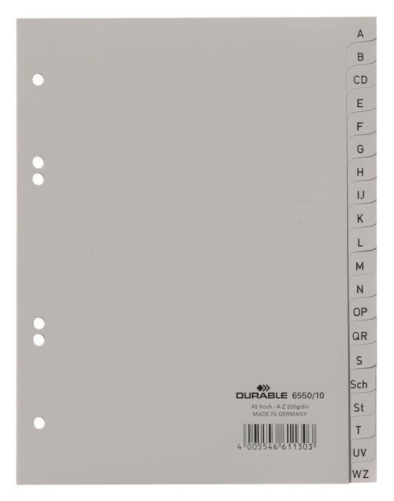 Przekładki A5 A-Z PP szare 6550 DURABLE