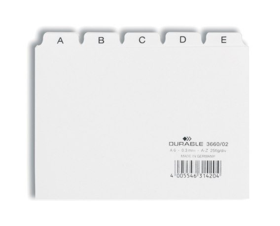 Przekładki A6 25 szt. 5/5 do kart. indeksami 25mm biały 366002 DURABLE A-Z (X)