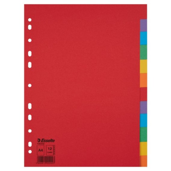 Przekładki karton A4 12 kart ESSELTE 100202 kolorowe bez karty opisowej