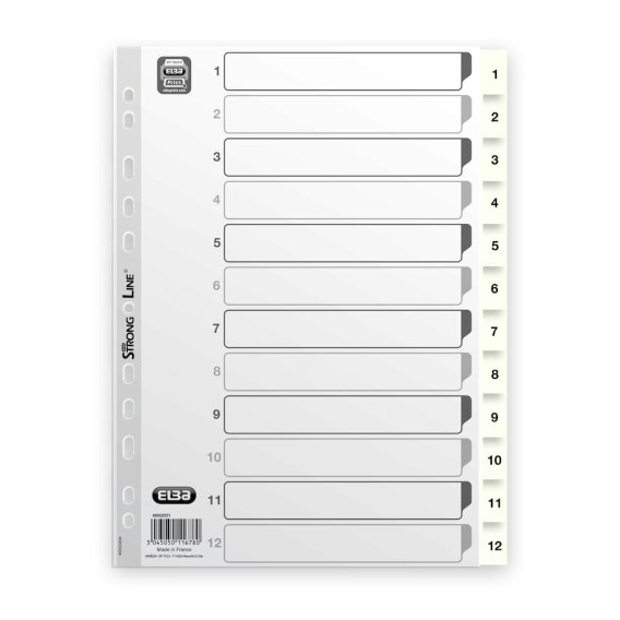 Przekładki numeryczne A4 MAXI 1-12, białe, polipropylenowe, OXFORD 100204771
