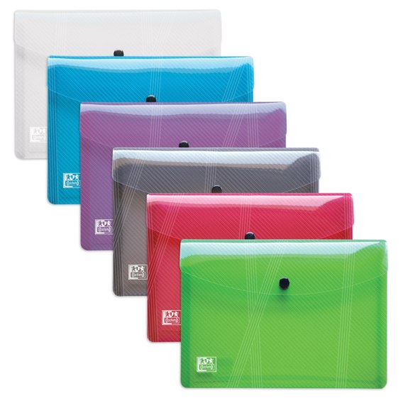 Przezroczyste teczki A5 w sześciu różnych kolorach doskonale sprawdzą się w każdej torebce.