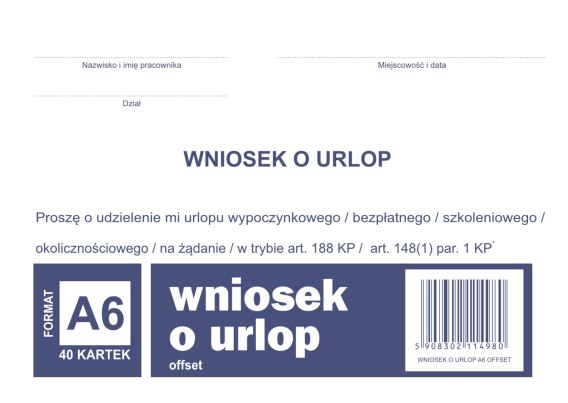 Wniosek o urlop, A6 40 kartek, 10-515-5 DOTTS
