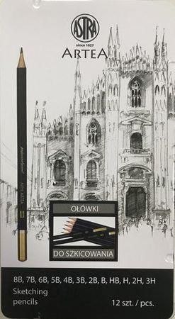 Zestaw ołówków do szkicowania Astra Artea mix 12 sztuk metalowym pudełku, 206120013