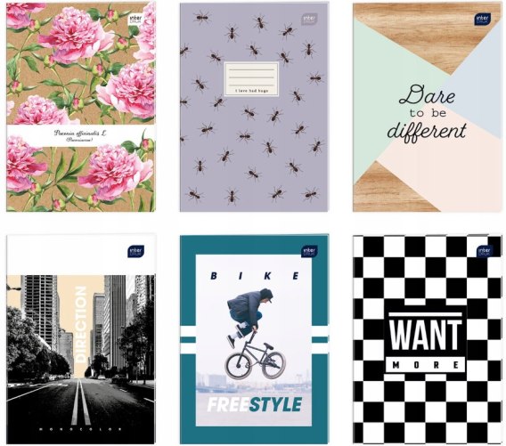 Okładka pokryta lakierem UV. Bogata kolorystyka i duża różnorodność wzorów okładek. Format: A4. Ilość kartek: 60 kratka Producent: Interdruk. Zeszyty charakteryzuje wysoka jakość papieru, estetyczne wykończenia, modna grafika okładek. Ponadczasowa seria zeszytów w pięknych kolorach. Klasyczne, minimalistyczne, a jednocześnie niezwykle eleganckie.